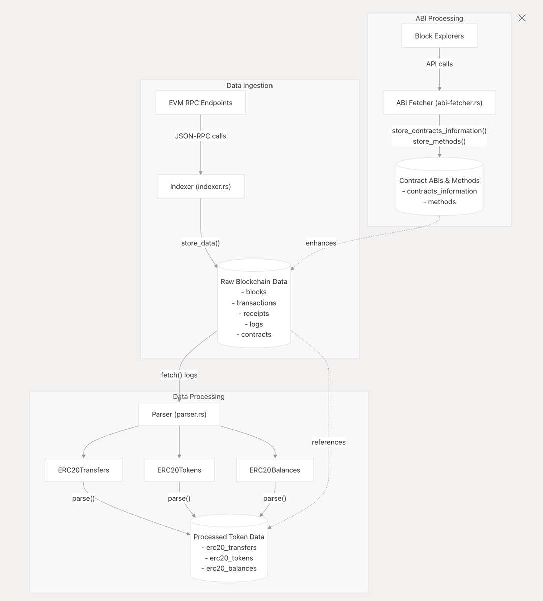 币安Alpha吸引了无数流量,币安Alpha支持了诸多公链,其中又以EVM兼容链最多,尤其是BNB链,Alpha中最正统的公链。为了构建量化基础数据,高效的扫链必不可少,本文将基于DeepWiki,对DefiLlama出品的EVM Indexer项目进行抽丝剥茧,逐步探究如下内容:
