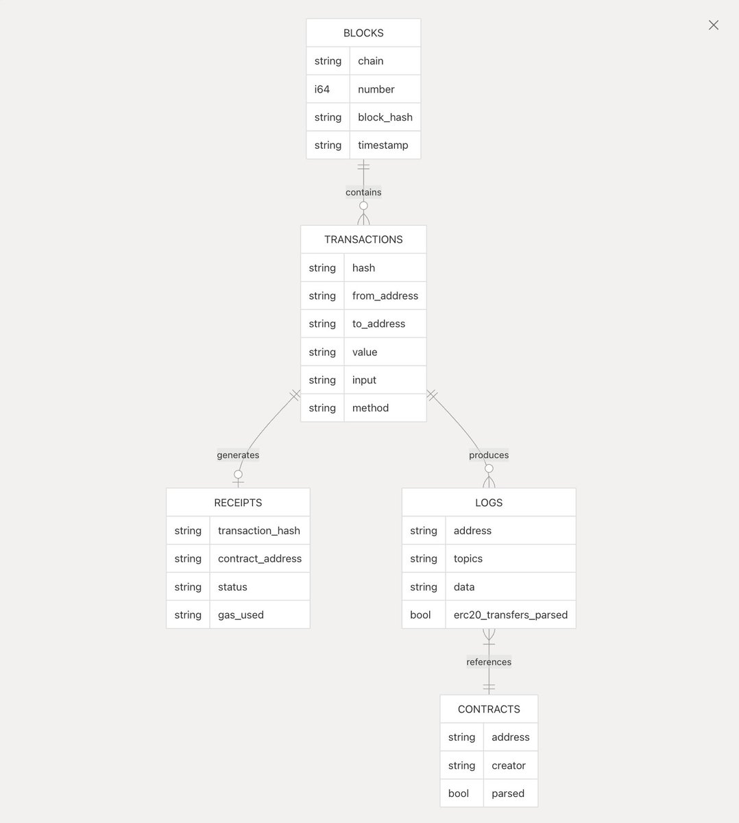 DatabaseBlock | Block header information including number, hash, and timestamp |
